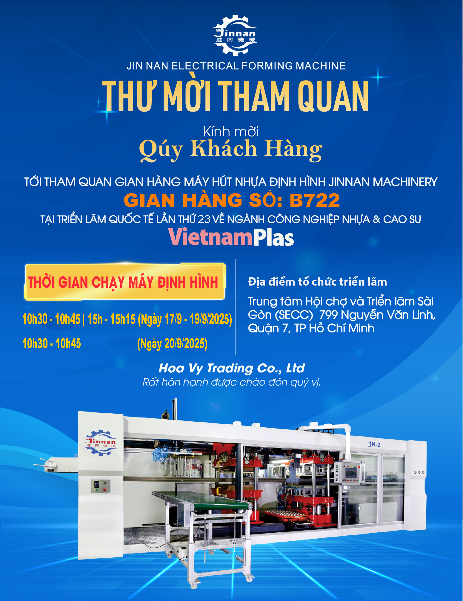 Jinnan Machinery sắp tới sẽ tham dự triển lãm Vietnamplas 2025 tại TP.HCM. Đây là triển lãm Quốc tế lần thứ 23 về máy móc thiết bị ngành công nghiệp…